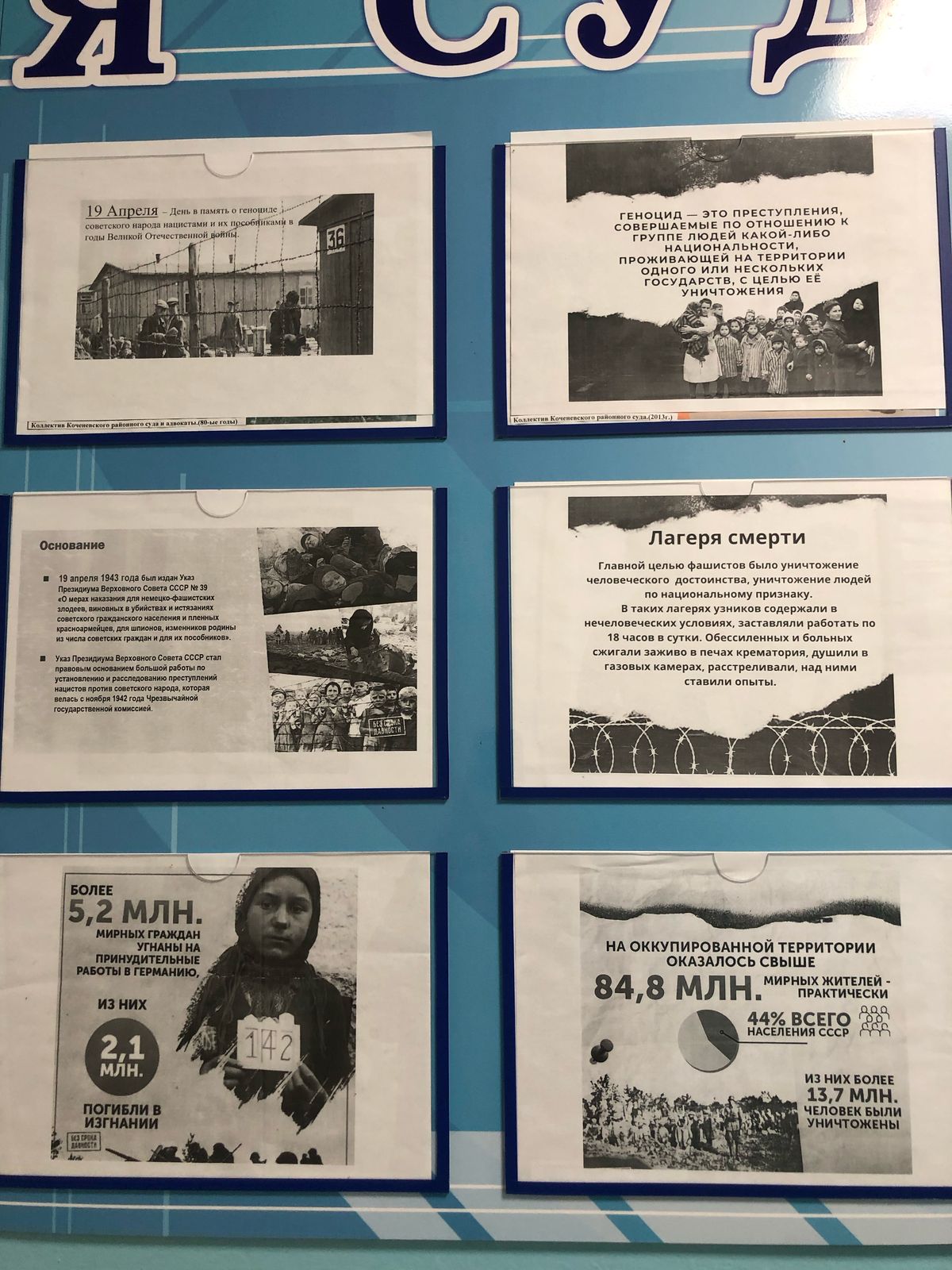 10 апреля 2025 г. рамках Дня единых действий в память о геноциде советского народа нацистами и их пособниками в годы Великой Отечественной войны, сотрудники Коченевского районного суда Новосибирской области посмотрели видеофильм «День единых действий 19 апреля 2025года», также ознакомились с материалами относительно геноцида советского народа нацистами и их пособниками. Вышеуказанные материалы дополнительно вывешены на стенд суда.